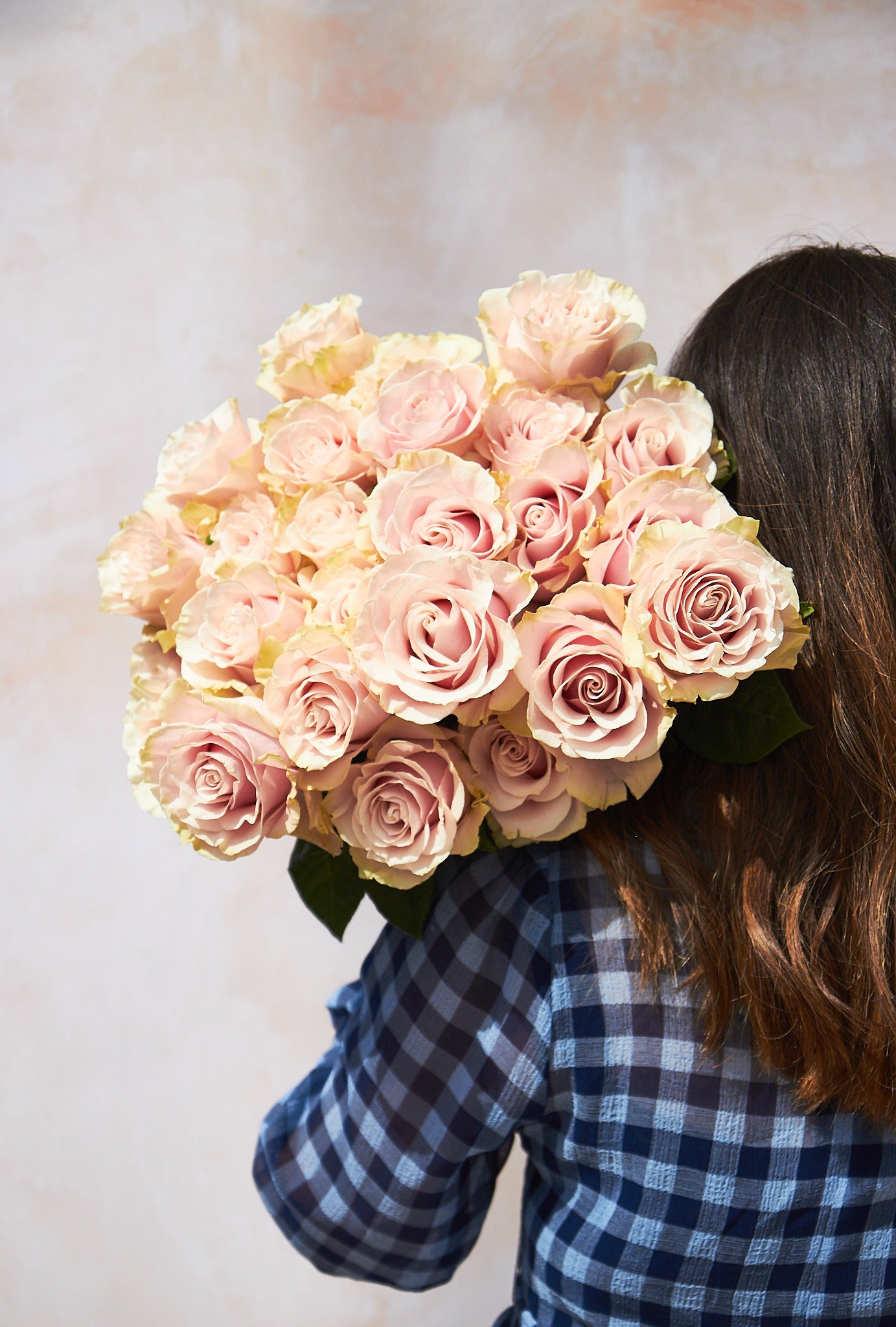 The single-flower style, is our personal favourite as the stunning nature of these roses mean that you don’t need many in a vase to make an impact. The volume of ‘filler’ that is typically sent in a more traditional bouquet, is replaced with a look of minimal luxury.
